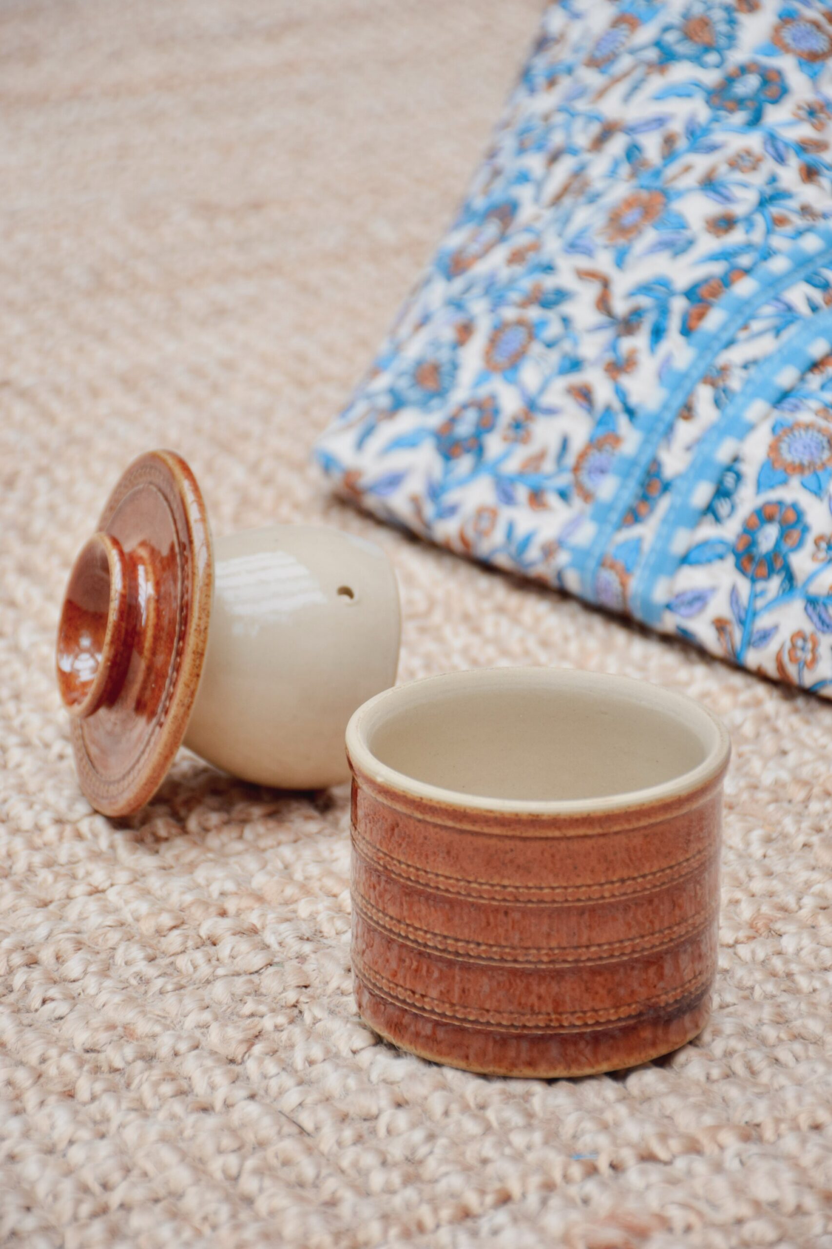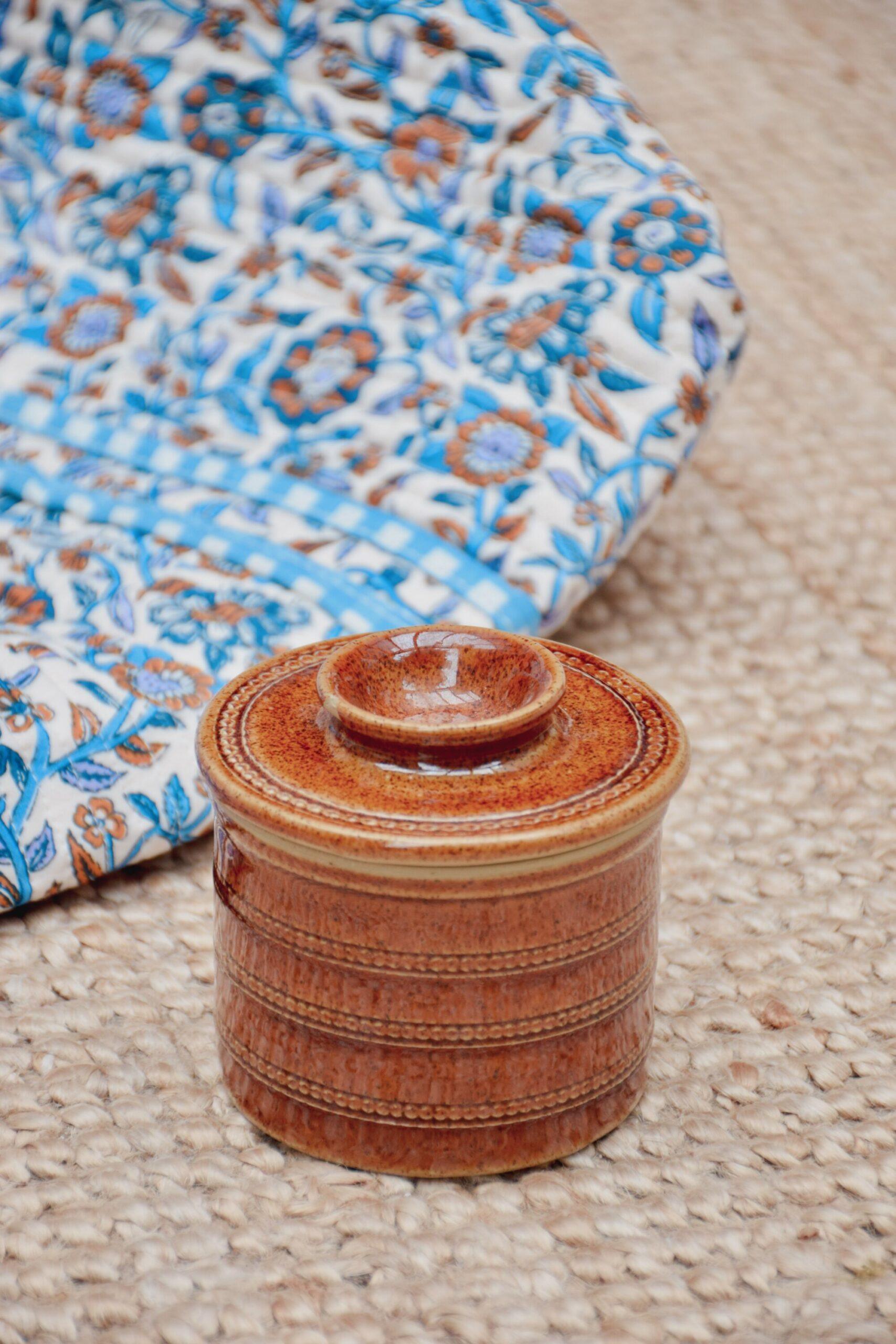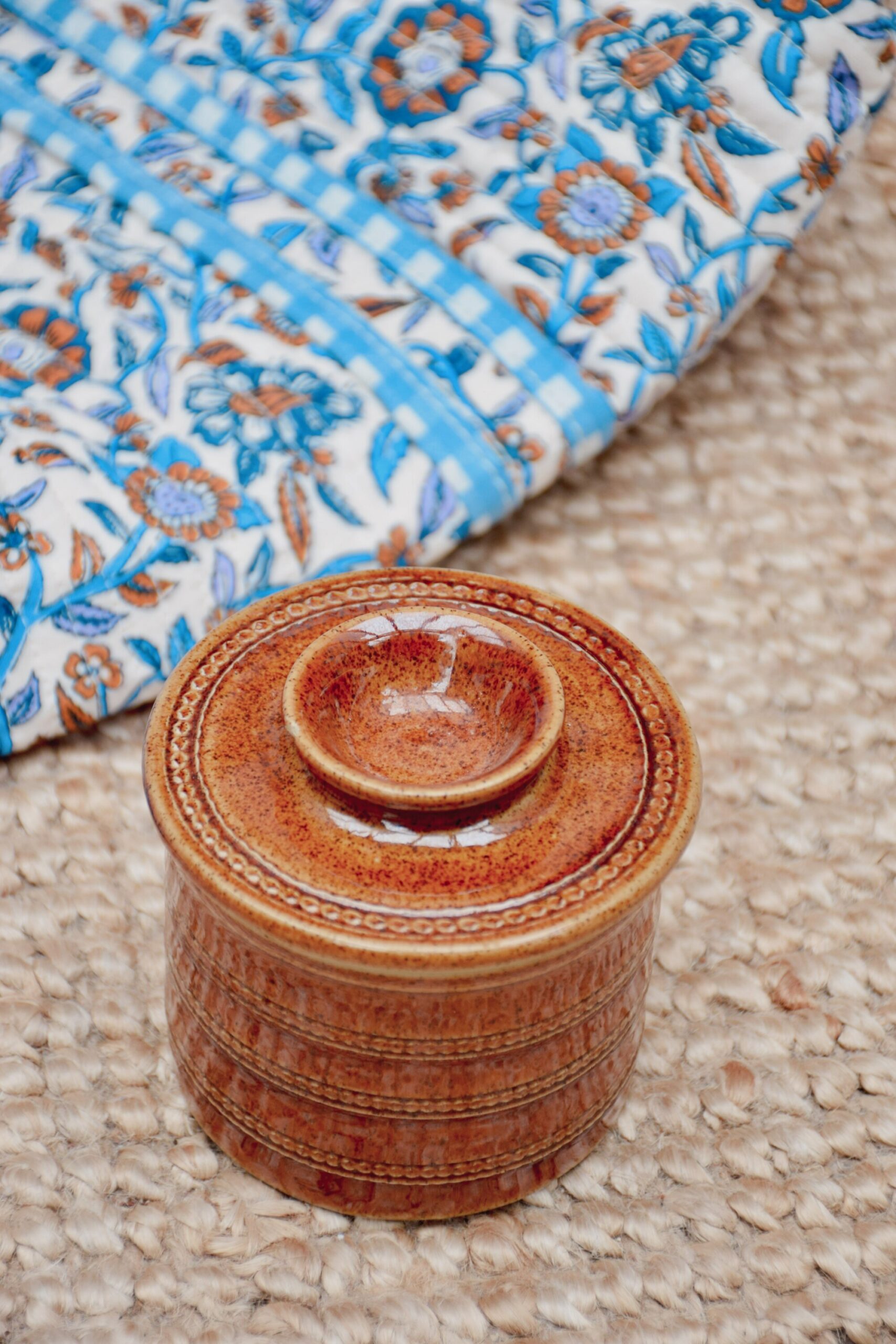 Il s’agit d’une pièce incontournable pour les gourmands : Un Joli beurrier à eau en grès vernissé, fabriqué en France par la Poterie du Berry 🇫🇷.