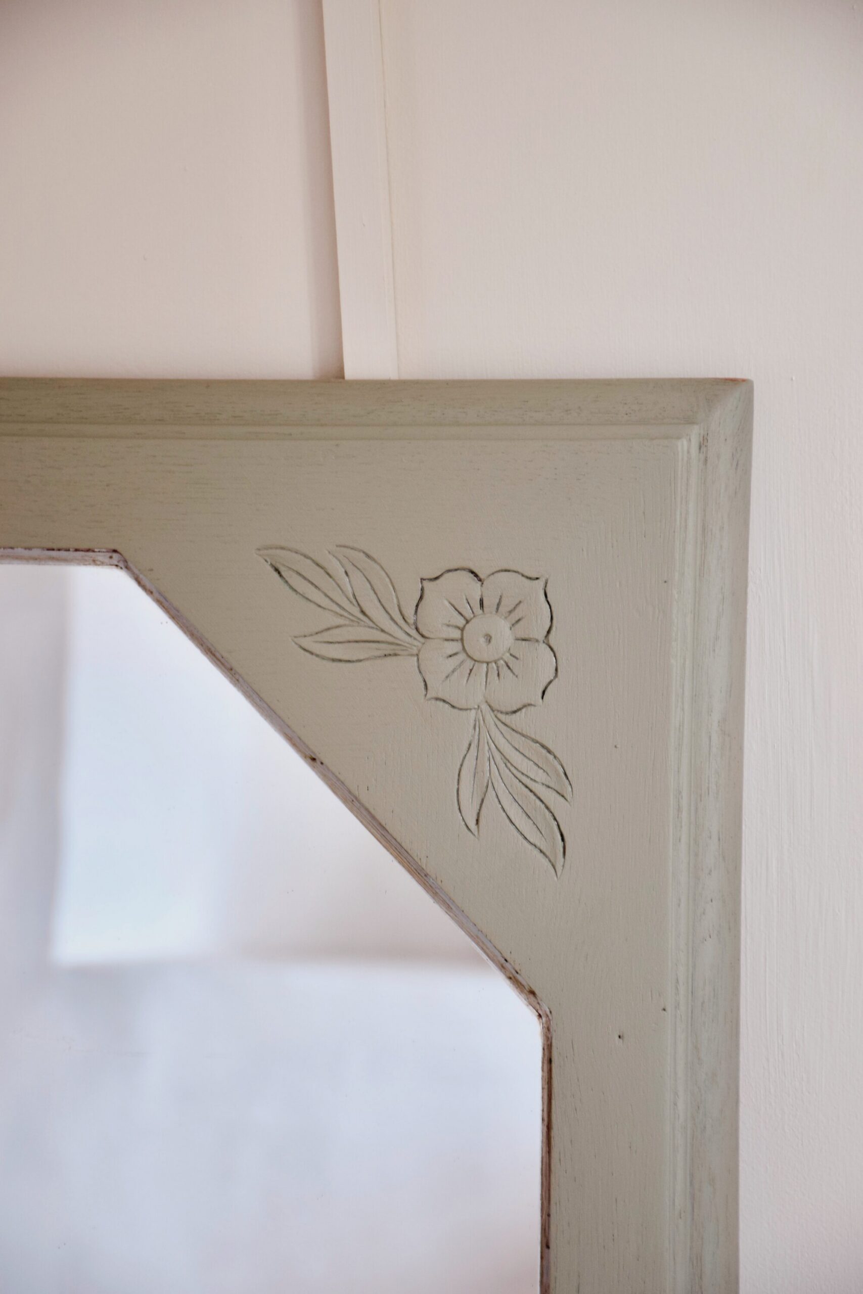 Avez-vous vu ces délicates moulures florales dans les coins du cadre en bois ?