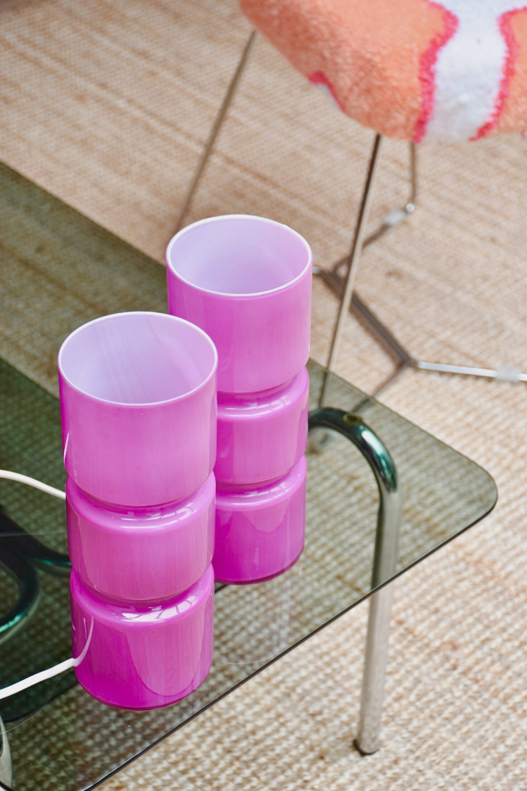 Fabriquées en verre opalin, elles se distinguent par leur extérieur fuchsia vibrant qui apporte une touche de modernité à tout intérieur. L’ intérieur blanc assure une diffusion douce de la lumière, créant une ambiance chaleureuse et accueillante.