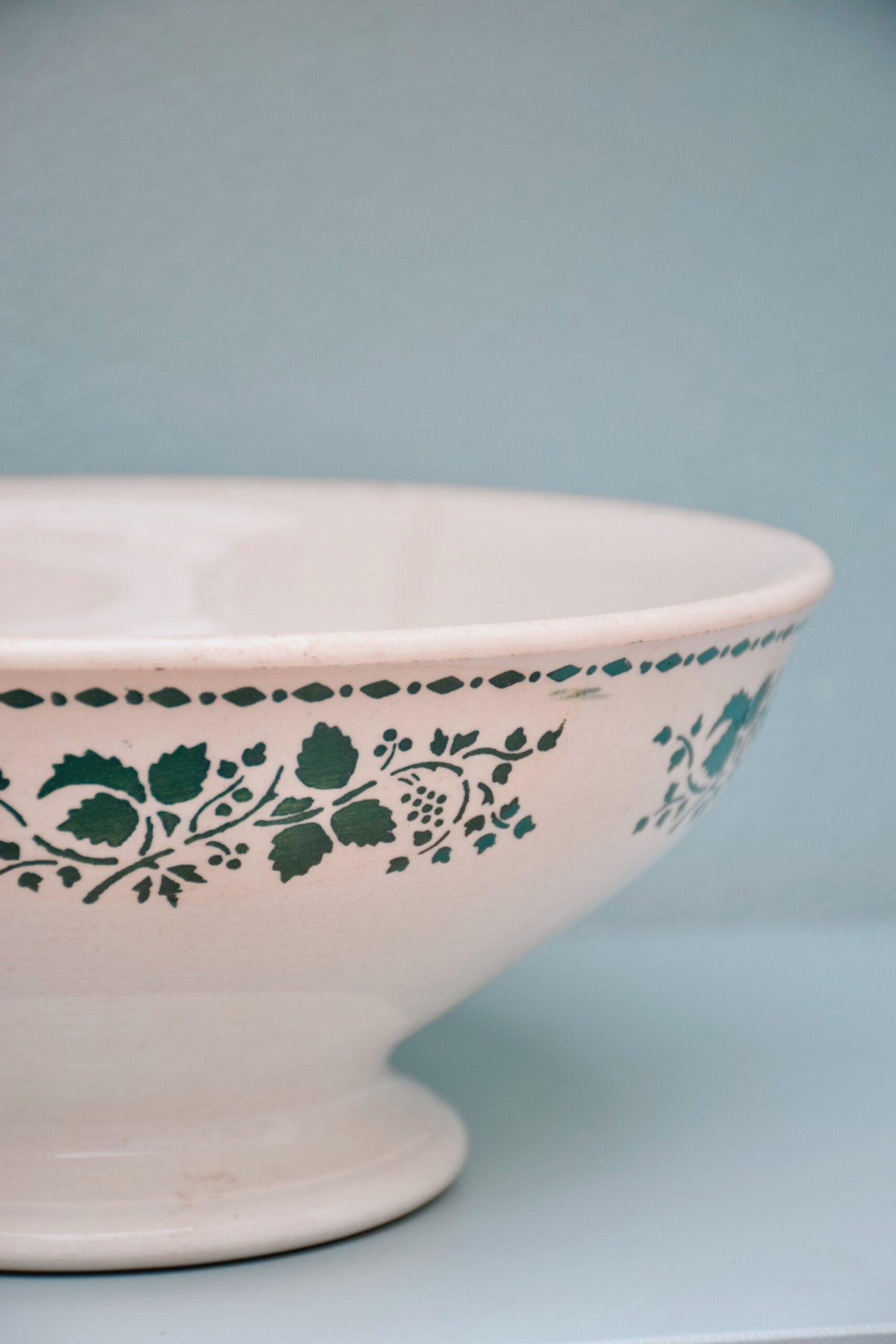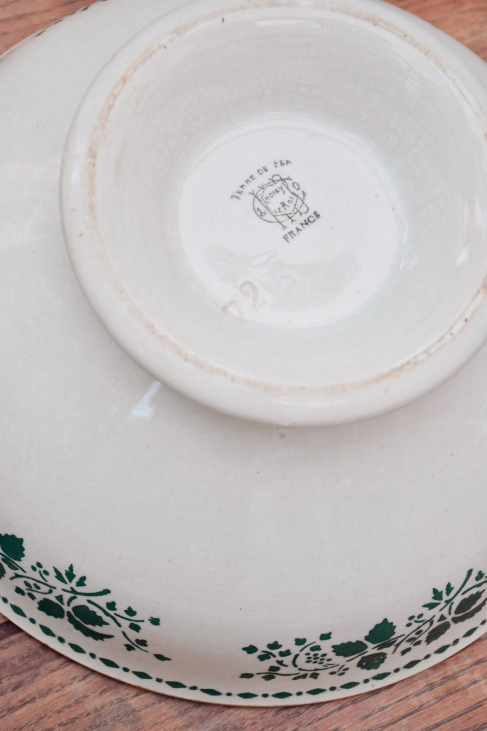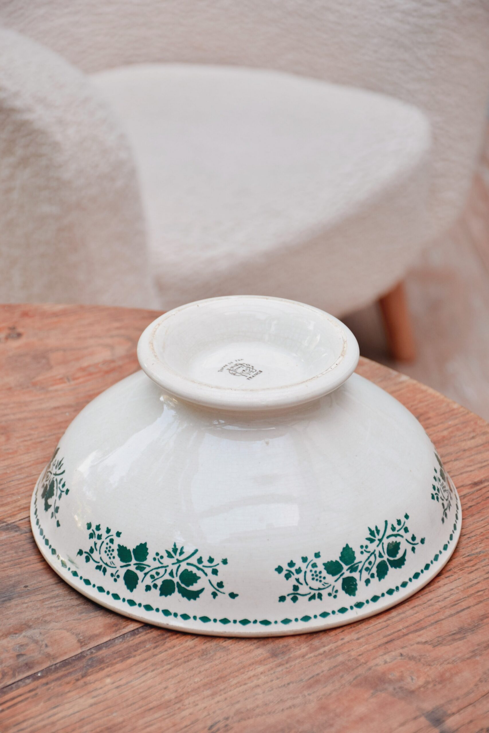 Voici un saladier issu du modèle « Choisy Le Roi » fabriqué en terre de fer par la célèbre faïencerie française Longwy.