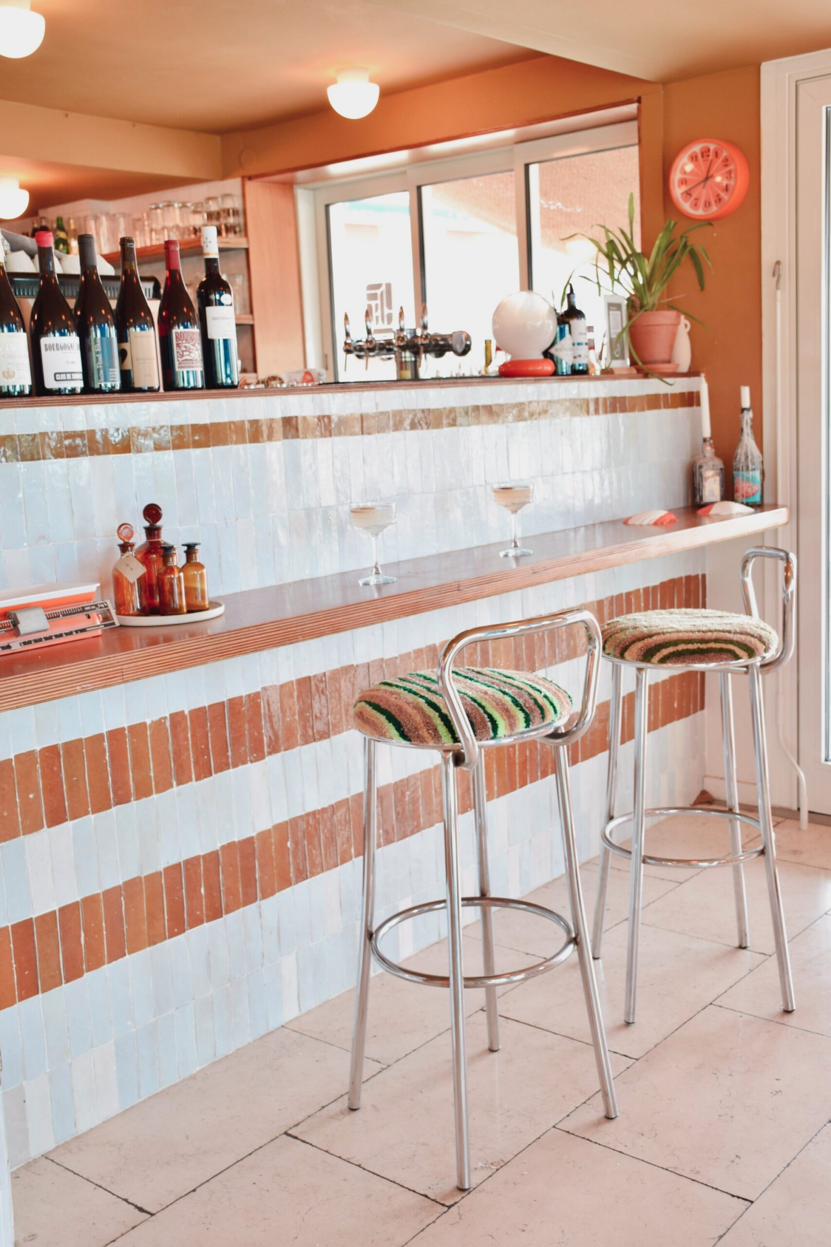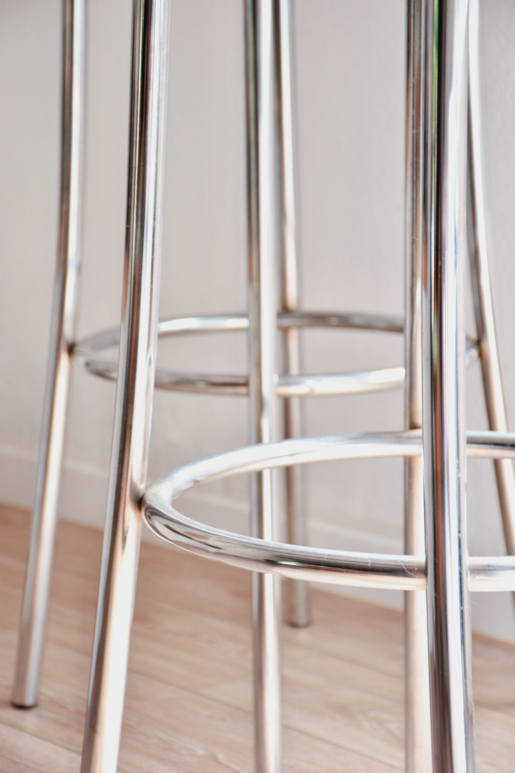 Découvrez ces tabourets intemporels avec leur structure tubulaire chromée qui reflète la lumière tout en assurant une robustesse durable.