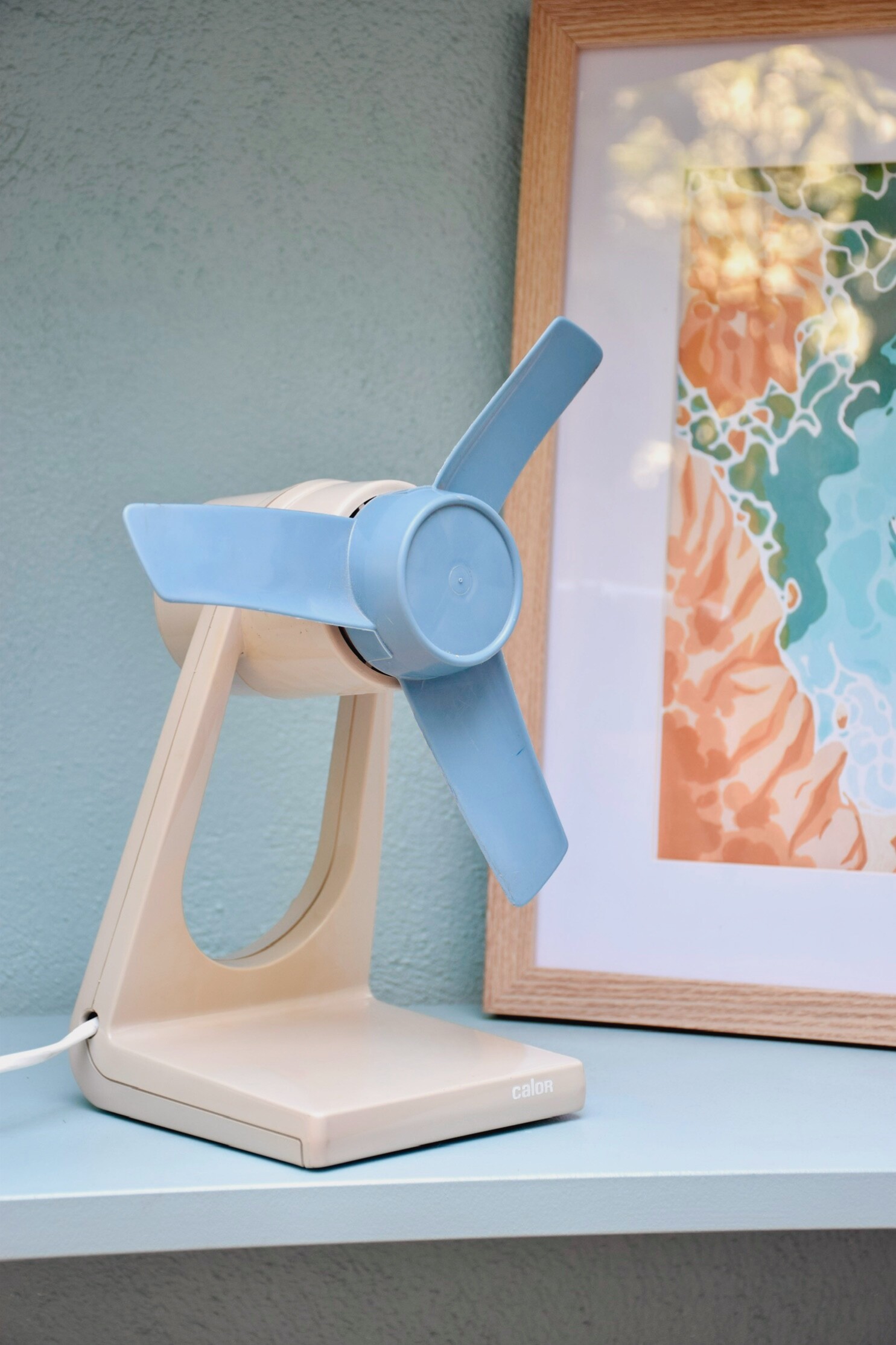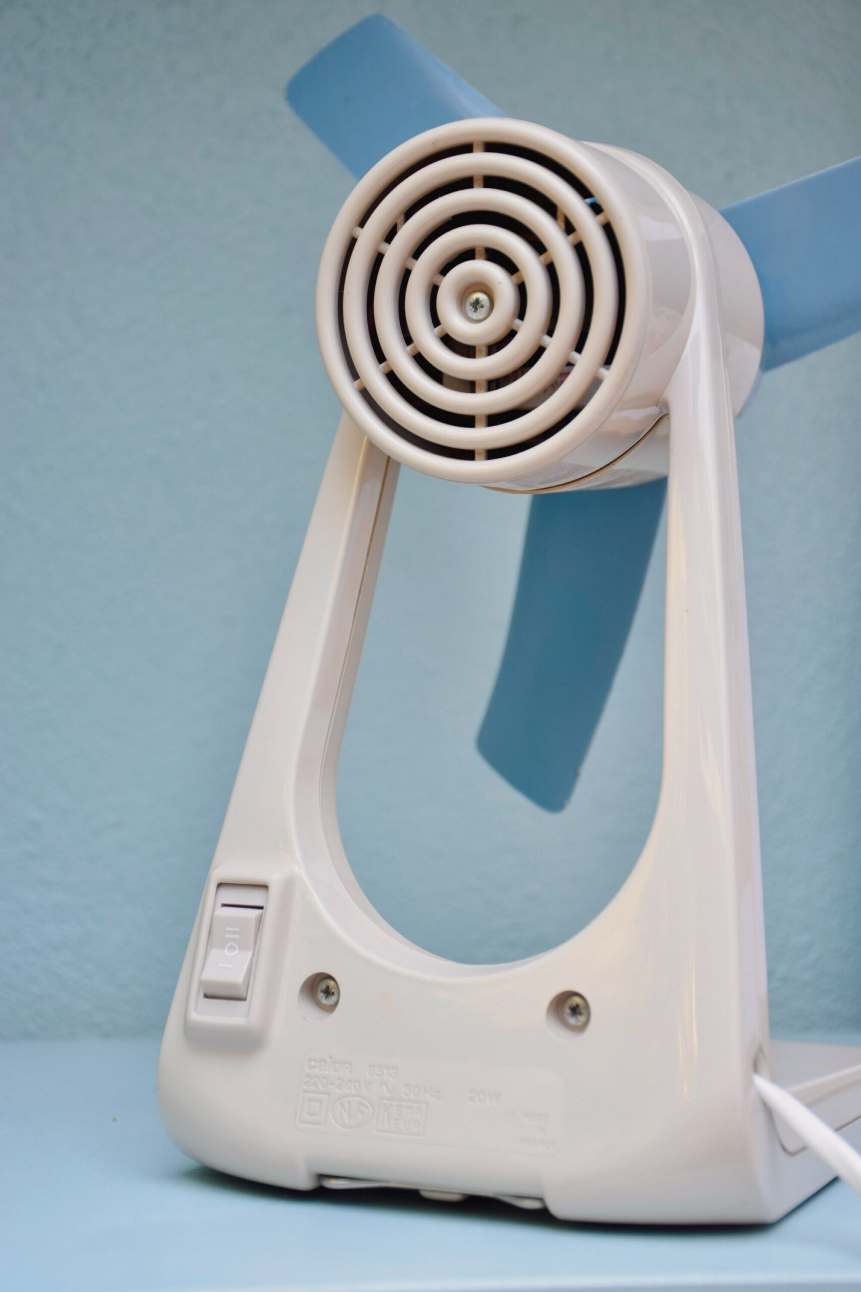 Joli ventilateur de table vintage made in France par la Société Calor. Il s’agit du modèle 8513 tout droit venu des années 70.